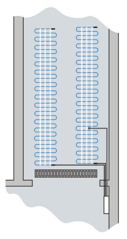 Általában elég a garázsbejárót nyomsávban fűteni 2×50-60cm szélességben. A garázsbejáró előtti területet és a kapu területét viszont érdemes úgy megfűteni, hogy az biztosítsa a szabad működést és biztonságossá tegye a közlekedést.